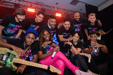 Vibe City is the perfect choice for weddings, galas, corporate meetings, milestone celebrations and festivals. We are a fully live band incorporating a DJ as a musical member of the band, not just playing along. The members of Vibe City come from all over the world but we bond over a shared passion for professional musicianship, great showmanship and positive vibes. There's no box to check for which style of band we are; our musical variety includes pop, rock, top 40, hip hop, R&B, Latin styles, old school, mashups and more. Each member brings a unique musical expertise that allows to fluidly transition through different genres of music. We are experienced at performing at the most prestigious venues, corporate events and high end social gatherings but have no problem throwing down a full on rager and getting the audience in on the action!